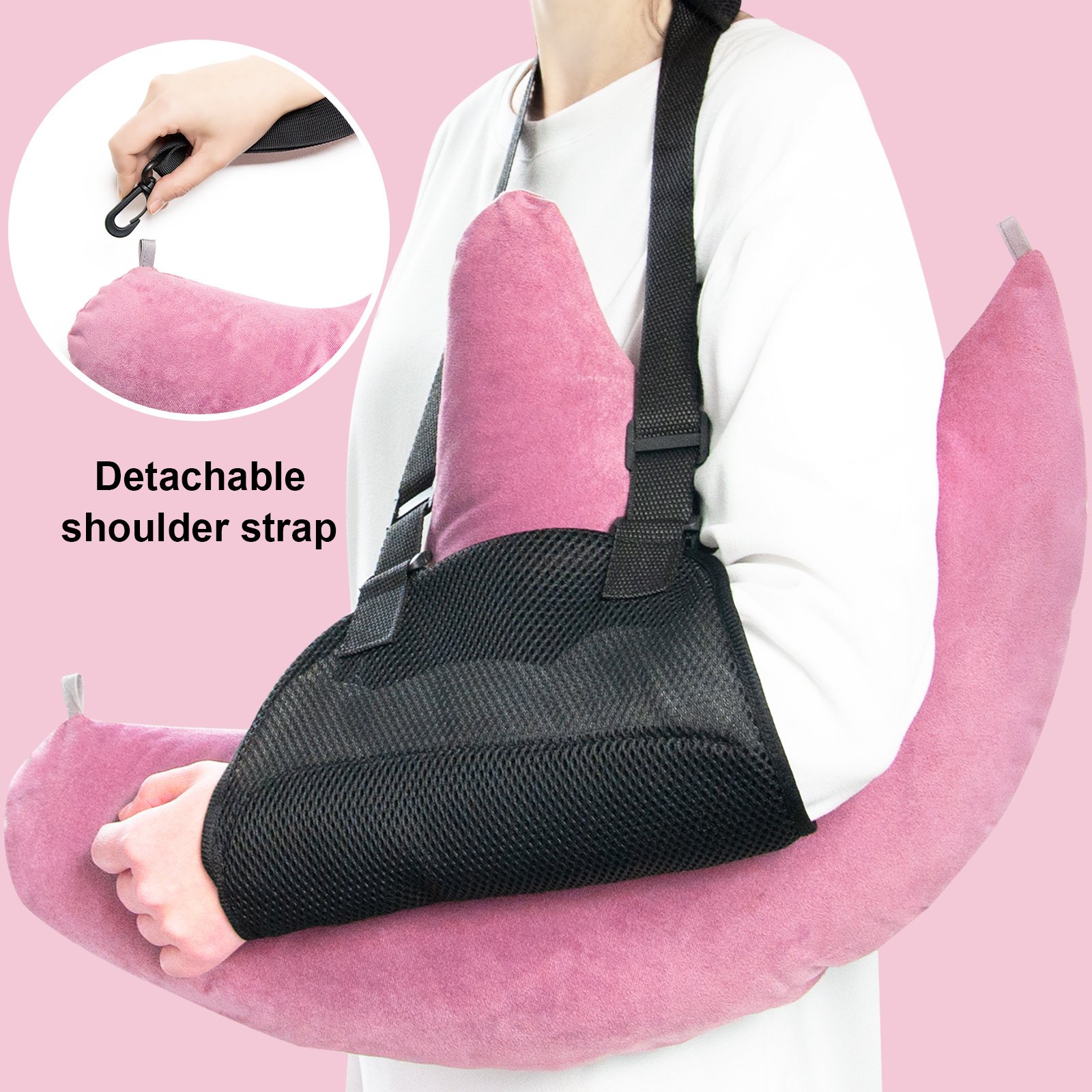 Our unique wing shape fits your armpits, allowing it to rise slightly and relieve pressure on the rotator cuff. The straps and pads on this ergonomic pillow are adjustable, allowing you to easily adjust the padding to find the right level of support while sitting or sleeping.