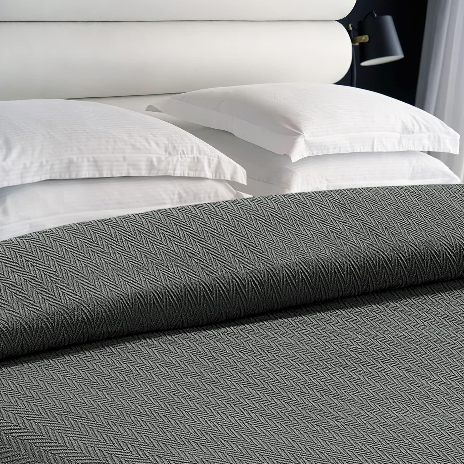 Queen Size Blanket for Bed 100% Cotton Blankets Soft and Breathable 410Gsm Waffle Lightweight Summer Blanket 90x90 Inches Dark Grey